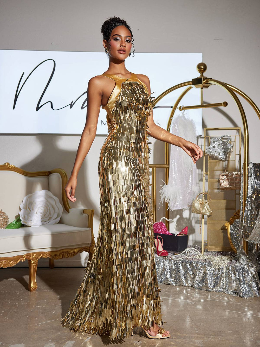 Brillez de mille feux dans la robe longue à sequins Leosan ! Ornée de sequins étincelants et d'un élégant nœud, cette robe attirera tous les regards et vous donnera une allure glamour et assurée. Parfaite pour les grandes occasions, vous adorerez l'effet qu'elle produit !