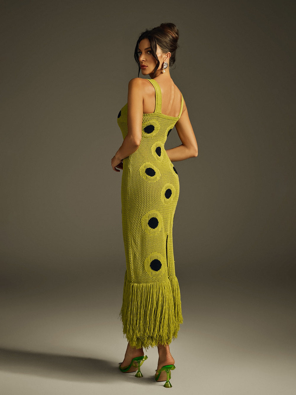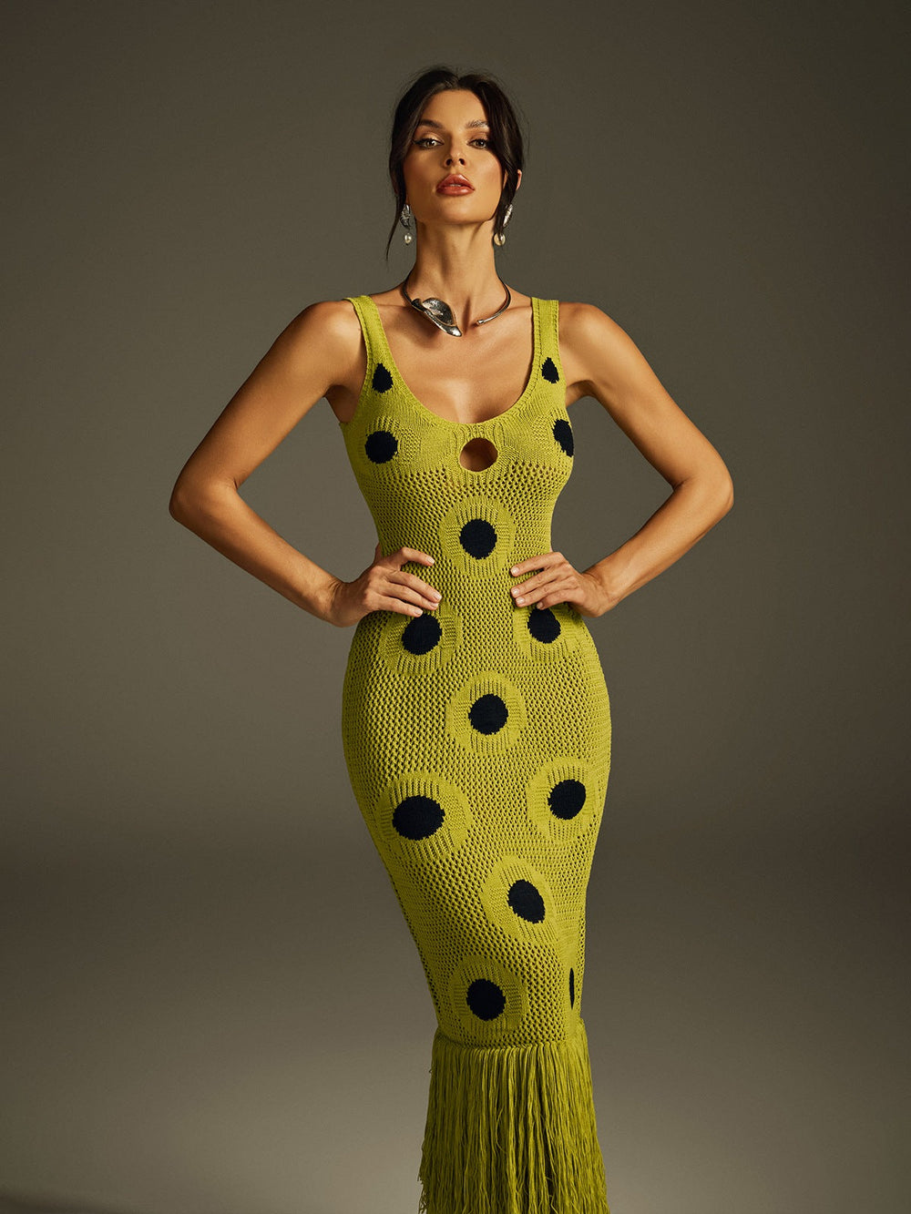 Affirmez votre style avec la robe midi en maille à pois et franges Gaelion. Cette pièce unique présente de délicats pois et des franges ludiques, apportant texture et mouvement à votre silhouette. La maille assure une coupe confortable et flatteuse, avec un drapé élégant. Parfaite pour les sorties décontractées comme pour les occasions plus habillées, cette robe midi allie charme et sophistication pour sublimer votre garde-robe en toute simplicité.