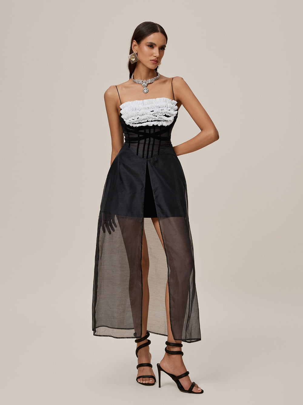 Sublimez votre garde-robe avec la robe longue fendue en tulle à fines bretelles Onofre. Dotée d'une superposition de tulle et de fines bretelles, cette robe offre une coupe chic et respirante, idéale pour les journées chaudes ou les sorties en soirée. La fente audacieuse sur le côté ajoute une touche de séduction tout en permettant une grande liberté de mouvement. Parfaite pour les événements où vous souhaitez briller avec assurance et élégance.